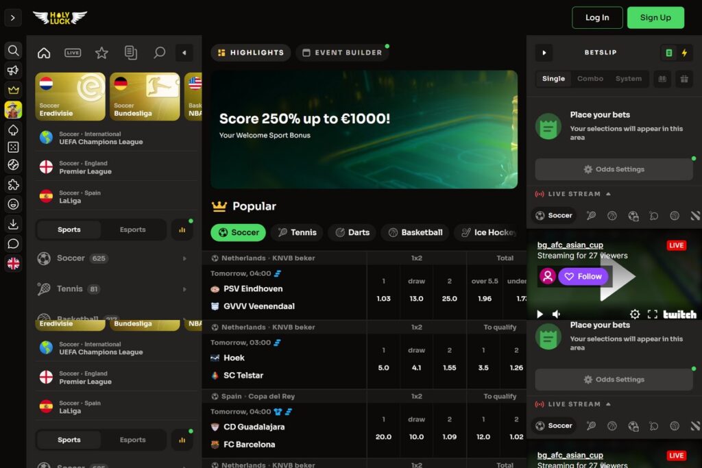 HolyLuck Sports may have a silly name, but this is a site that caters to serious sports bettors. Registered out of Costa Rica, HolyLuck has been in business since 2024, making it a relatively new player in the Dutch market – but one that has already earned our trust.