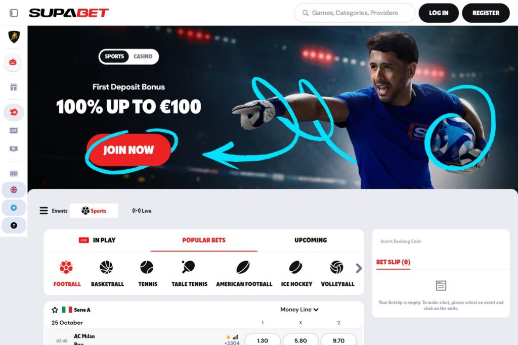 When it comes to betting sites in Germany, Supabet stands out as our No. 1 pick. At Supabet, you’ll find a clear focus on football markets, though other sports like handball and basketball are also well represented here. You’ll find thousands of markets on single matches from top-tier football leagues, along with great live betting options across the board.